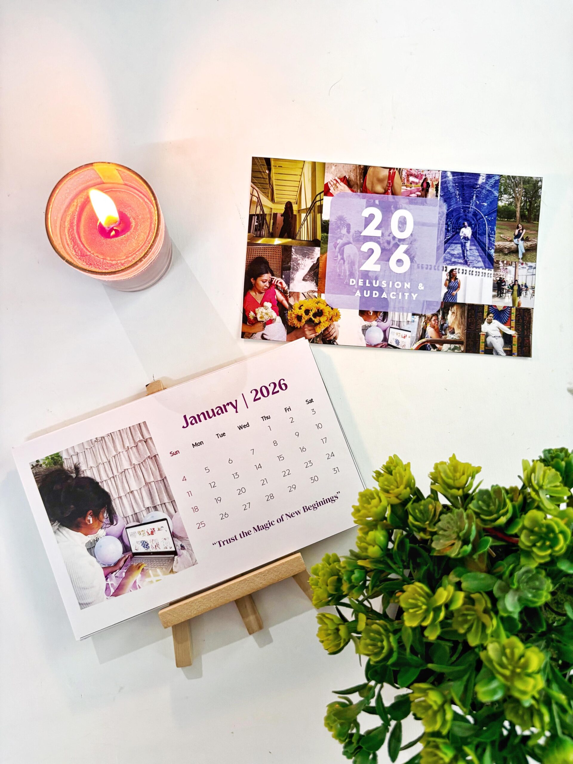 Bring positivity and purpose to your workspace with our 2026 Custom Desk Calendar – Delusion & Audacity Edition.