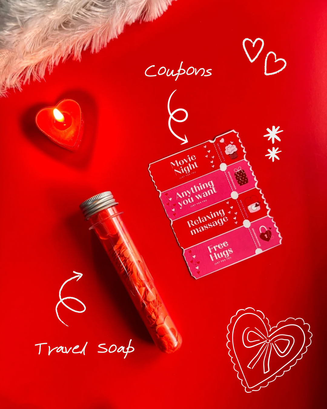 • 🎟️ Love Coupons (Movie Night, Free Hugs, Relaxing Massage, etc.) – 4 coupons